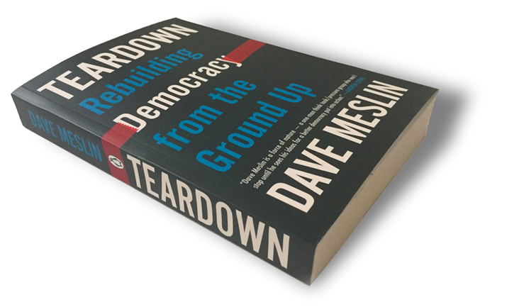 Teardown is not an aggregation of complaints—it’s a collection of solutions aimed at bringing our democratic ecosystem to life, not only in our legislatures but also in our daily lives. It’s a call for a revolution against our own cynicism and against a spiritually carcinogenic system that has crushed our voice. Dave Meslin's TED talk offered a thorough diagnosis. Teardown offers the remedies.